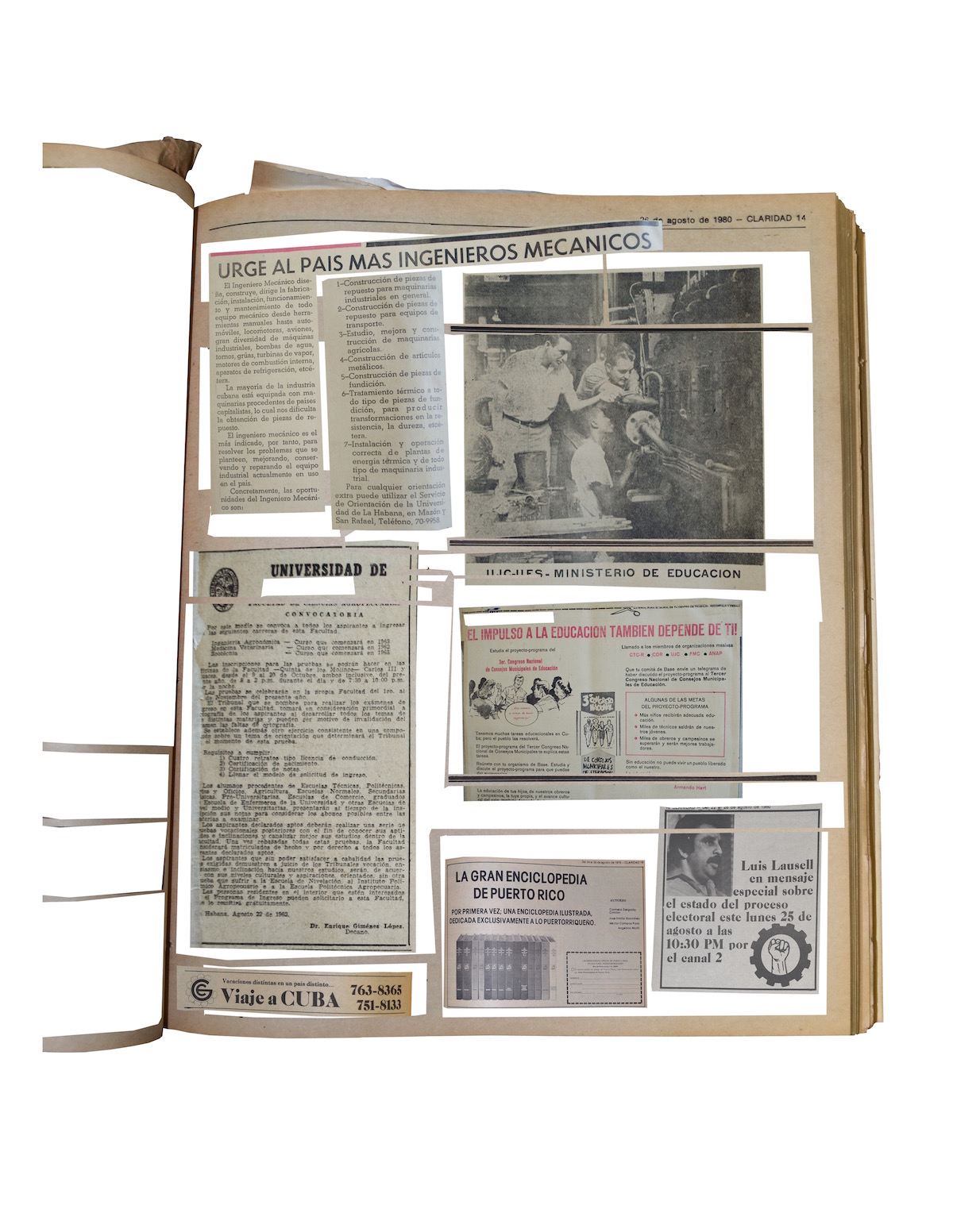 For my reconstruction of a Puerto Rico Libre I used newspapers from Puerto Rico and Cuba to create a historical approximation of my post revolutionary socialist island. First I documented the Puerto Rican Socialist Party’s newspaper, Claridad from the week of August 22, 1980. Detailed in Claridad’s pages are the leaders of the independence movement who would have most likely risen to power had the revolution been won, the concerns of the party in the 1980s, and the island’s social, economic and cultural context at that point in time.